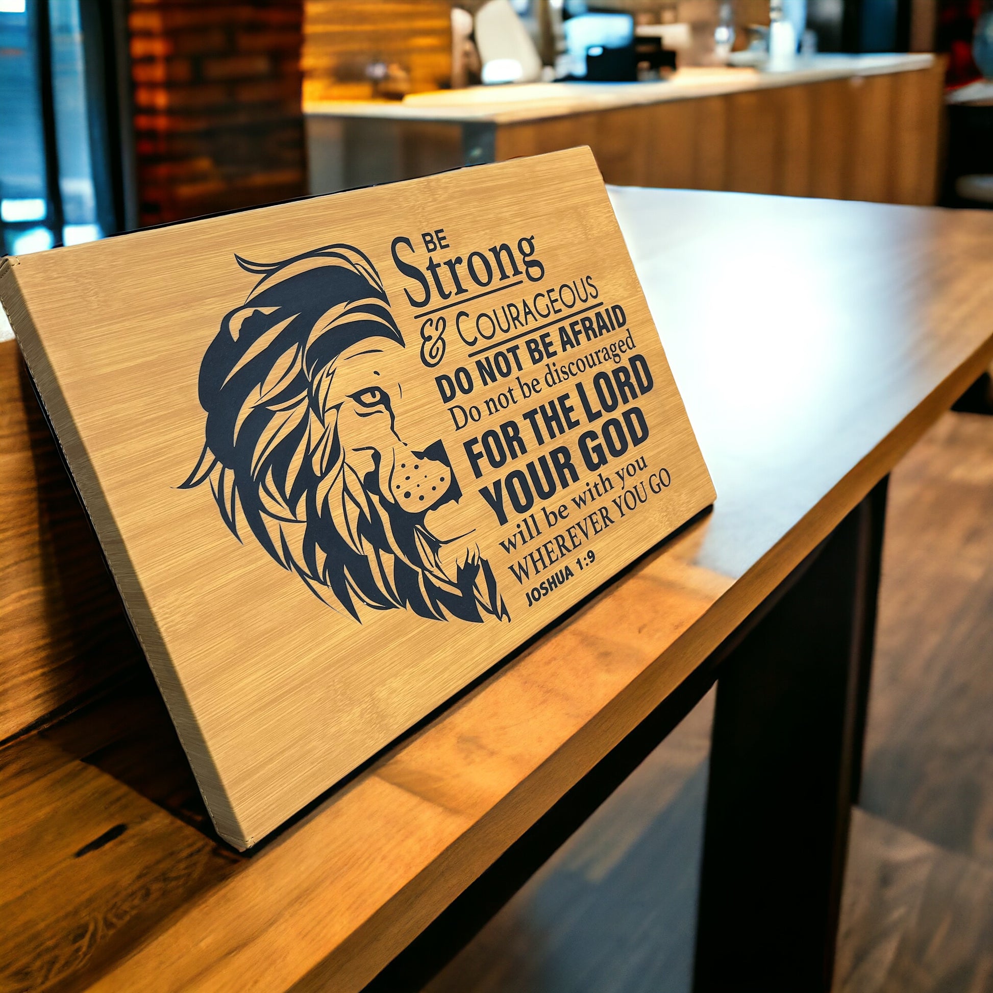 Enhance space with our laser engraved leather wall art featuring the inspiring scripture from Joshua 1:9: “Be strong and courageous.” Made from high-quality leather, this elegant piece serves as a daily reminder of strength and resilience.